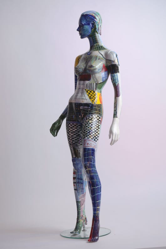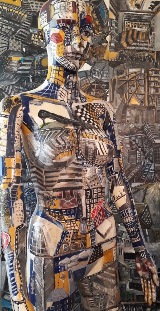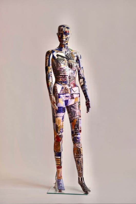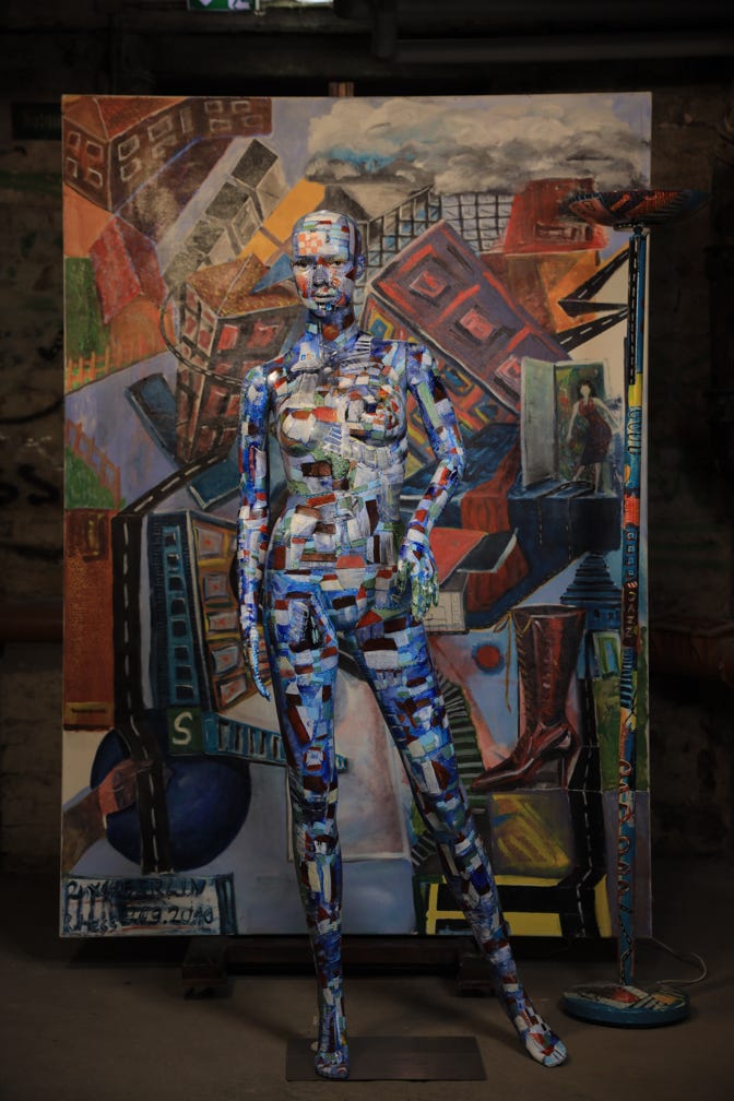 Diese Kunstmenschen bemale ich mit surrealistischen Stadtlandschaften.
